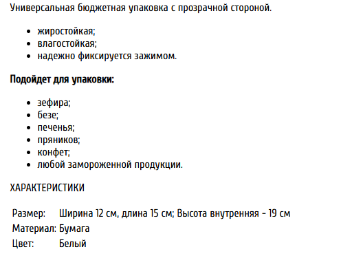 Пакет с прямоугольным дном 15*19*12 см с окном и зажимом, белый / 1 шт - Характеристики